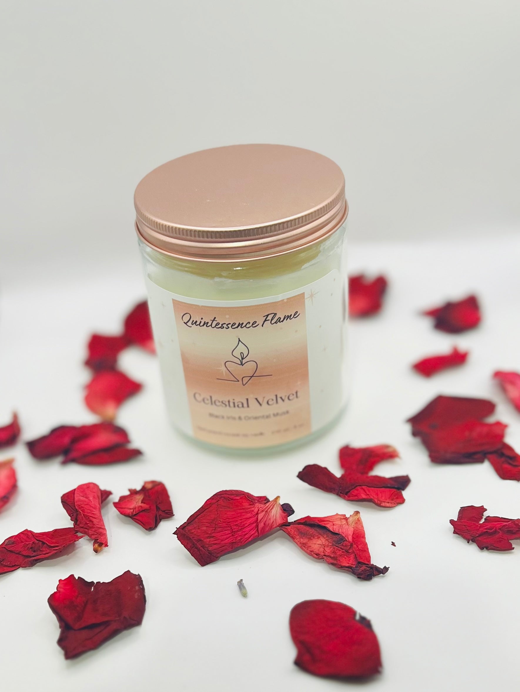 A hand crafted 8 oz creamy virgin coconut soy wax candle with wooden wick