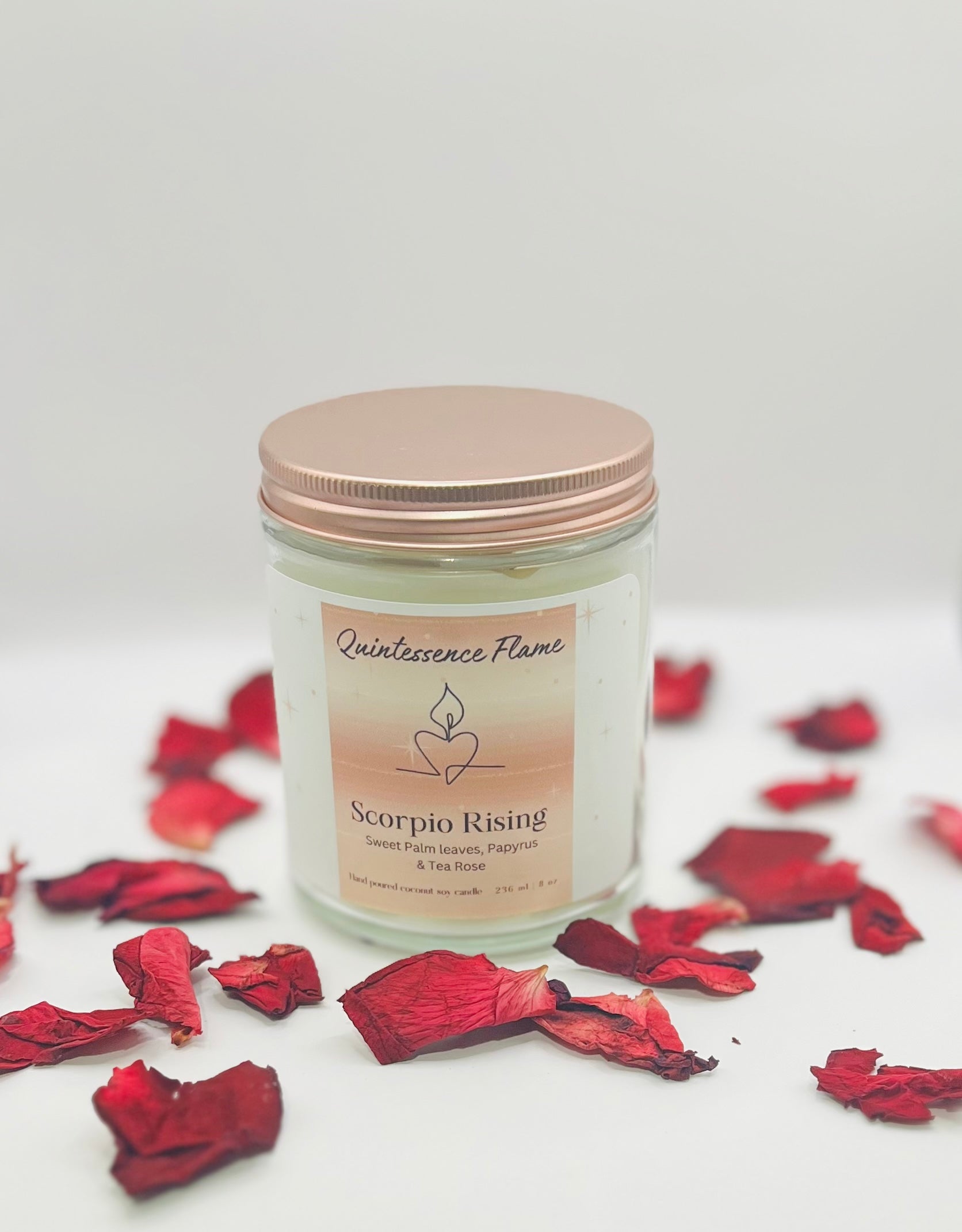 A hand crafted 8 oz creamy virgin coconut soy wax candle with wooden wick
